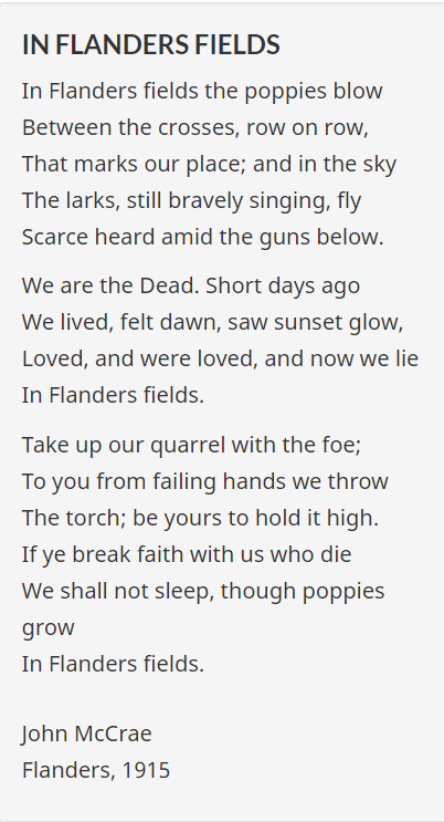 year our Grade 5 students will lead our annual Remembrance Day Service. It will take place on Wednesday November 8, starting promptly at 10:45am. It will include official elements such as the laying of wreaths, observing a moment of silence and sharing of the Last Post. We work with students to understand that this is not a typical assembly- for example, we will not applaud as it is a solemn service. Teachers will work with students to remind them of these expectations.